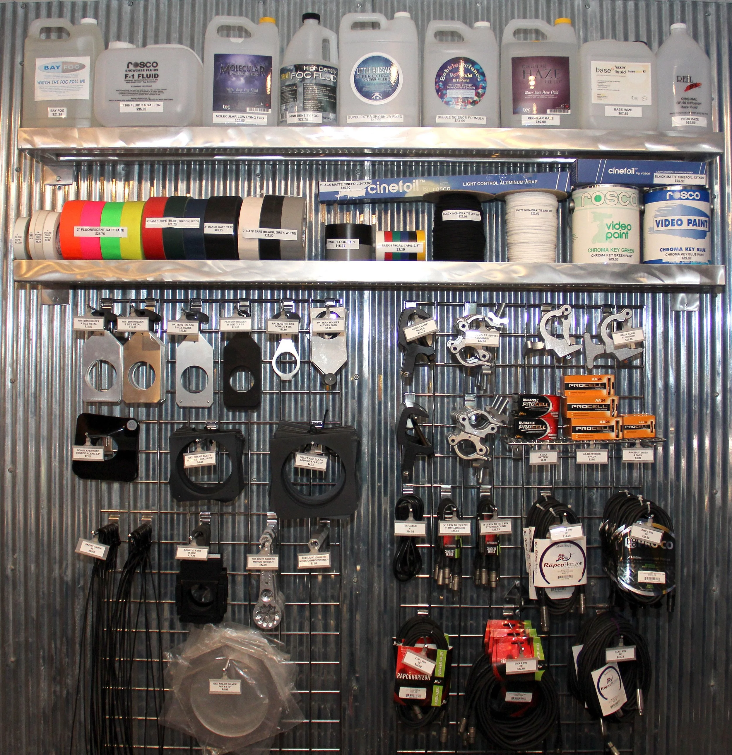 STAGE LIGHTING SUPPLIES, SPECIAL EFFECTS PAINT, GAFFERS TAPE, CLAMPS AND GELS ARE ALL IMPORTANT BUT SOMETIMES HARD TO FIND PRODUCTS TO ROUND OUT ANY PRODUCTION IN TAMPA BAY AND BEYOND. WITHIN OUR 15,000 SQ. FT. WAREHOUSE, WE HAVE A STOCK ROOM WHICH IS HOME TO OUR ENTIRE SUPPLIES INVENTORY. WE HAVE MOST OF WHAT YOU NEED ON HAND. WE LOVE TO HELP YOU PLAN AHEAD, BUT IF YOU NEED SOMETHING QUICK, WE CAN HANDLE THAT TOO.